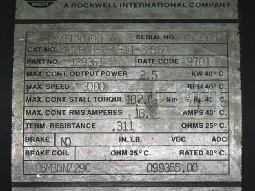 Allen Bradley 1326Ab-B2e-11-3396D Ac Servo Motor,3000 Rpm,K/T 138708,Ac