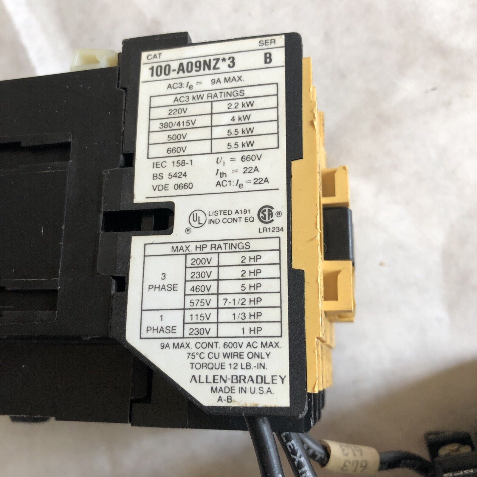 Allen Bradley 592 Jov16,Allen-Bradley 100-A09nz*3 B,24V Dc Overload Relay,Bc