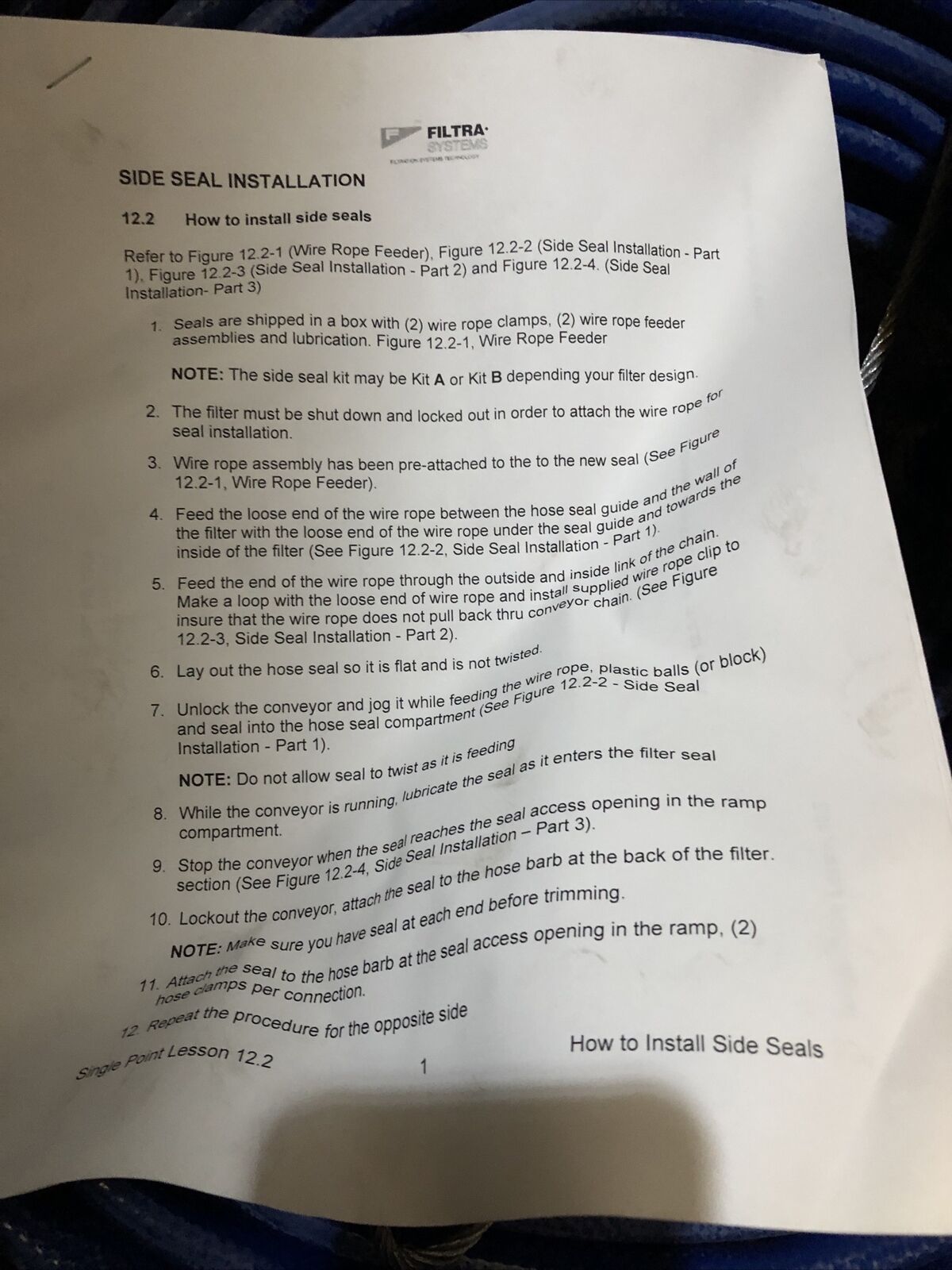 New Filtra Systems Wire Rope Feeder Side Seal,Bt