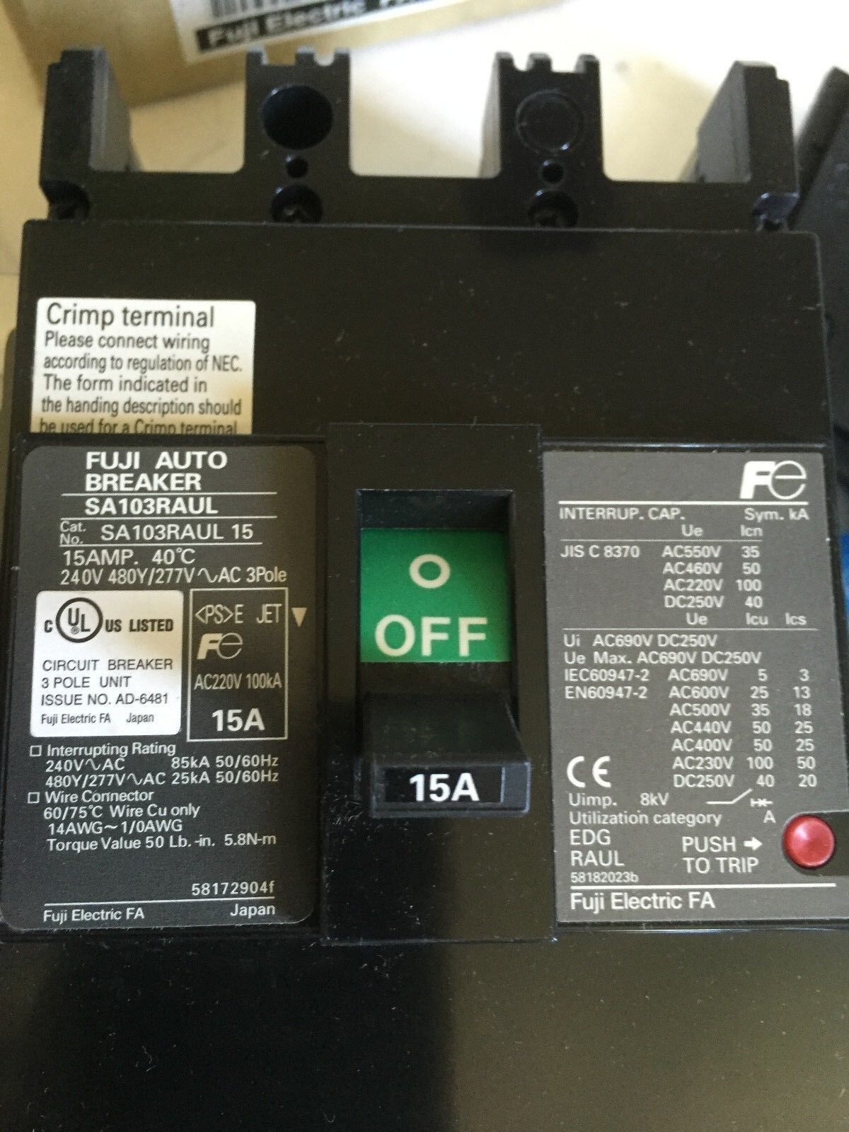 New Fuji Electric Sa103raul,Fuji 15A,3Ph Sa103raul/30 480Vy/277V 25Ka 30,Db