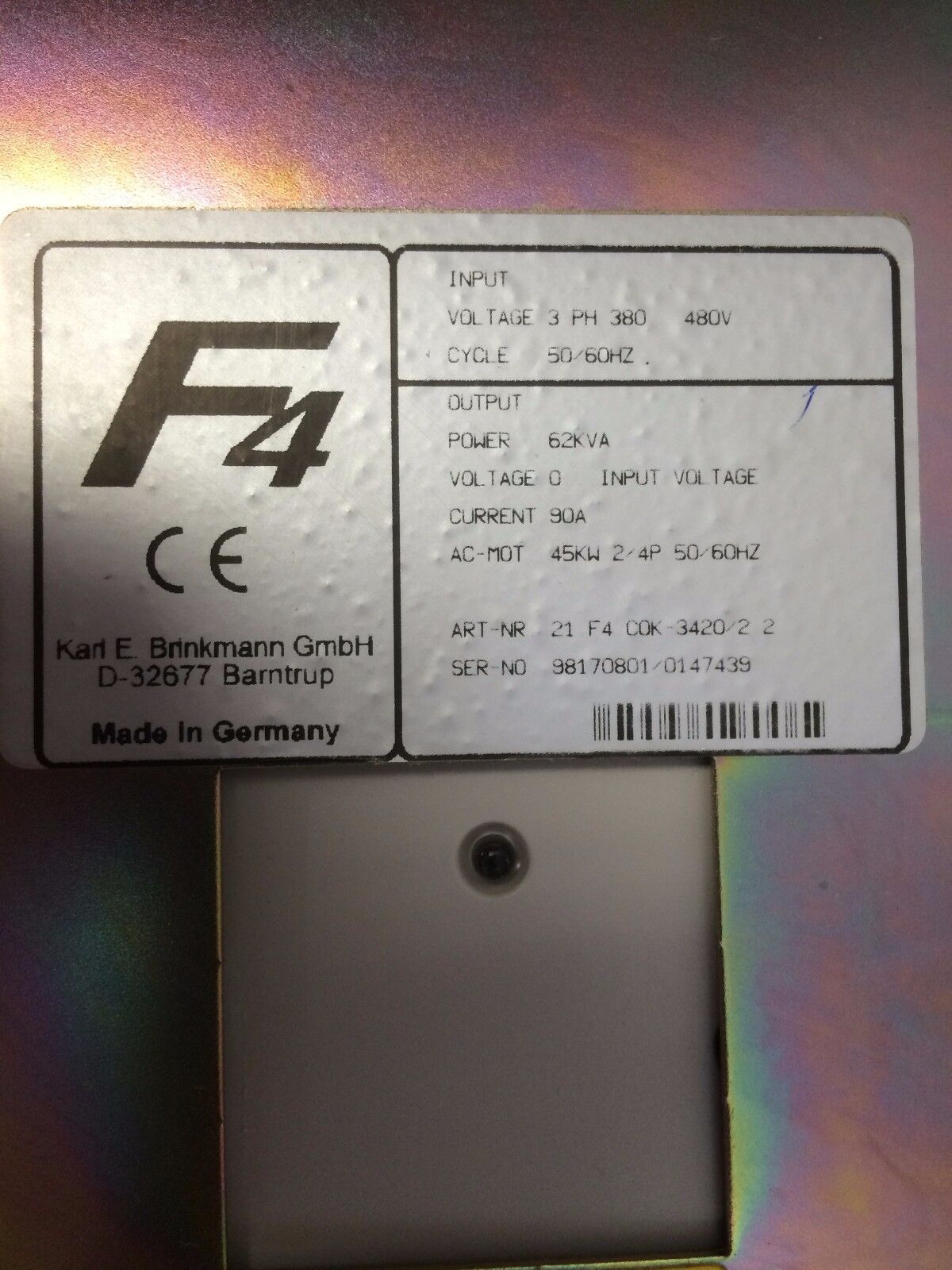 New Keb 21 F4 Cok-3420/2 2 Combivert F4 D-32677,21 F4 C0k-3420/2 2,62Kva,45Kw,Av
