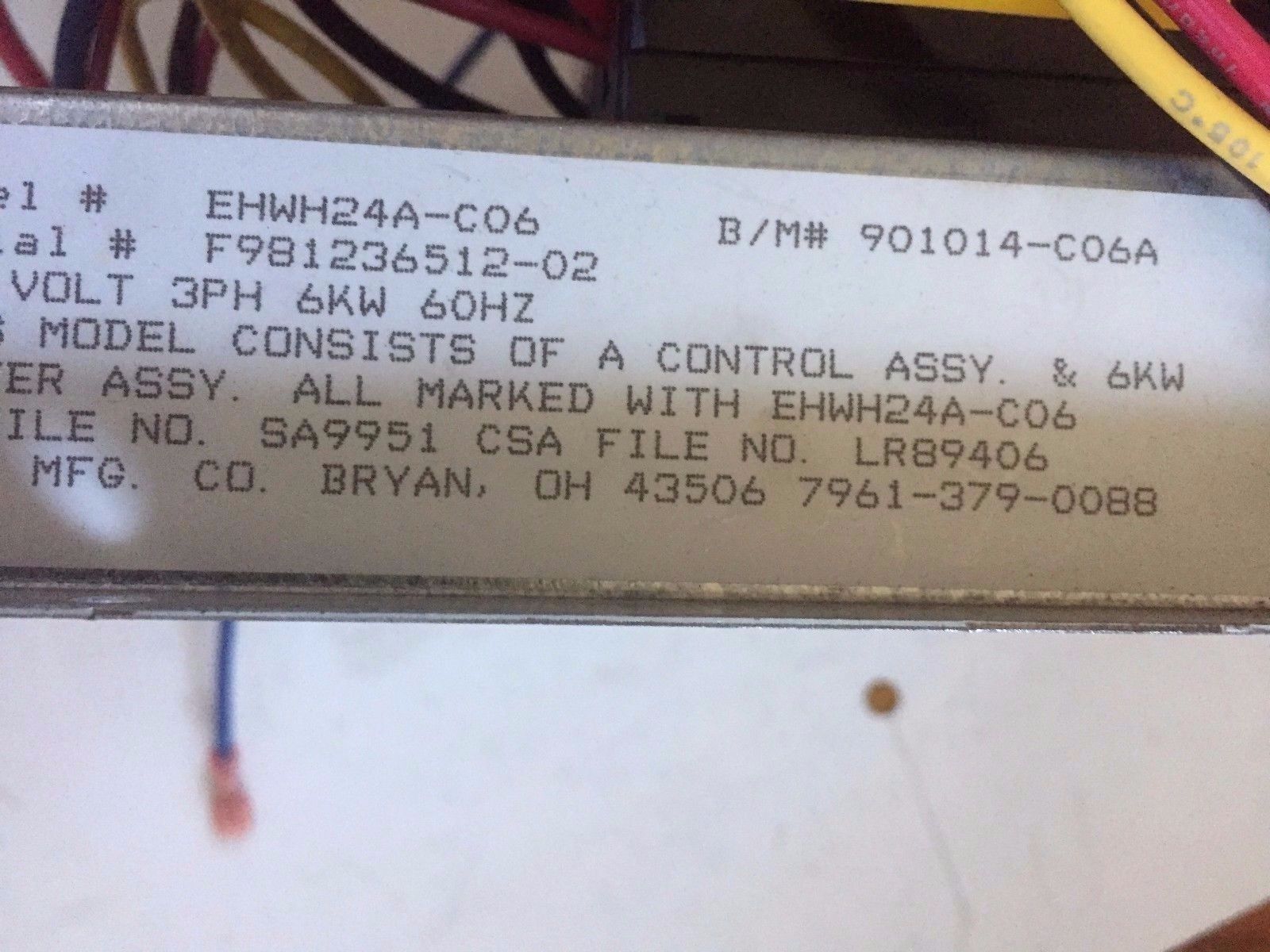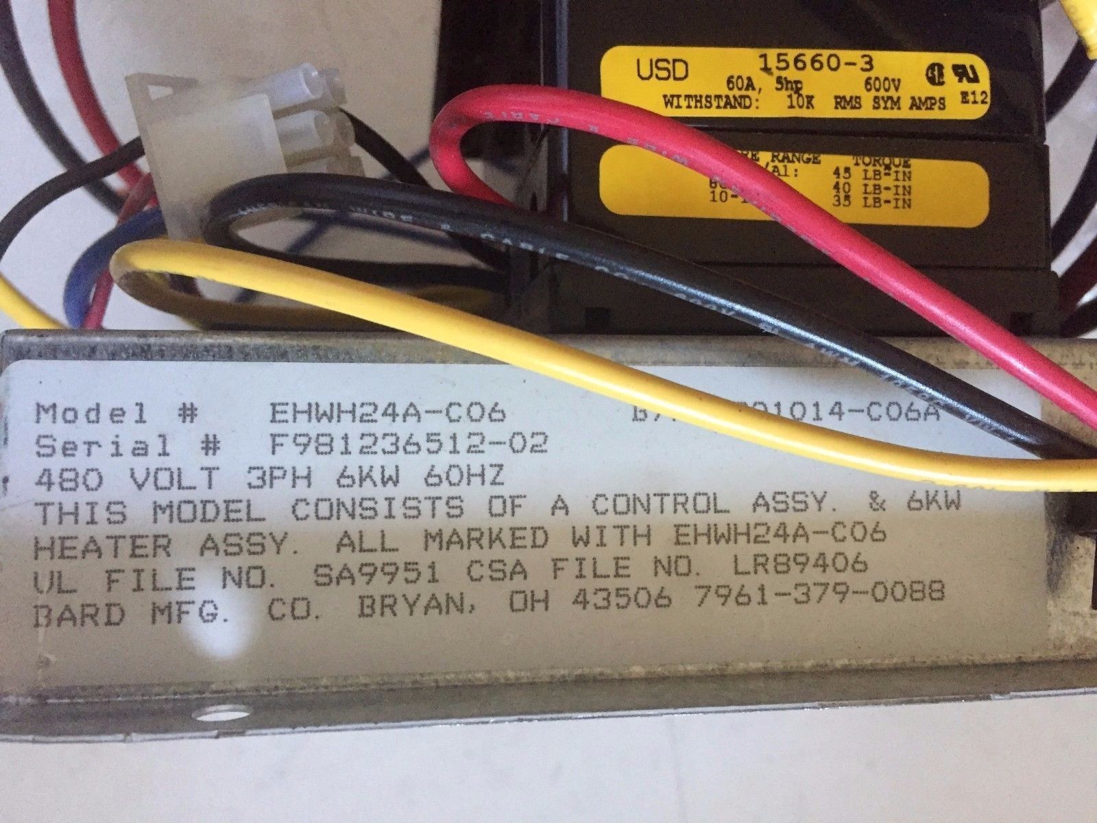 Usd 15660,60A-600,Bard Ehwh24a-C06,15660-3,8402-095 Heat Pump Heat Strip Base,Eq