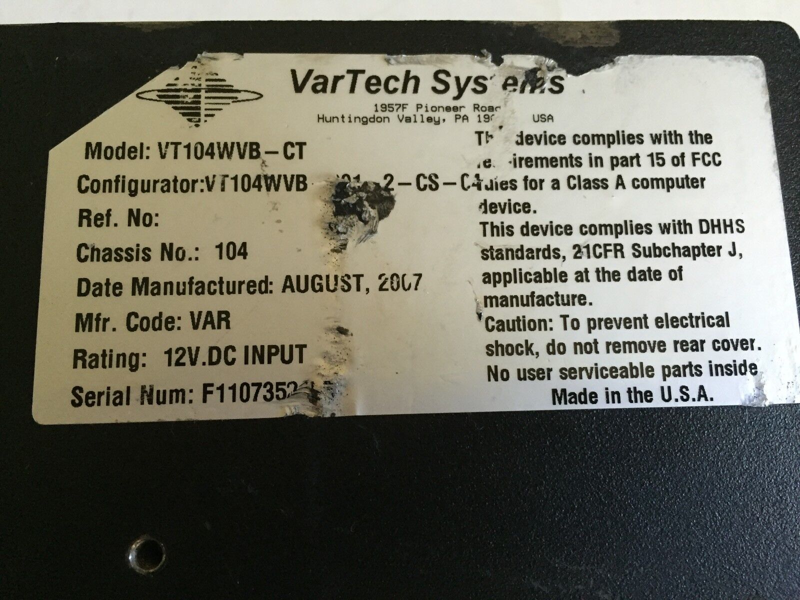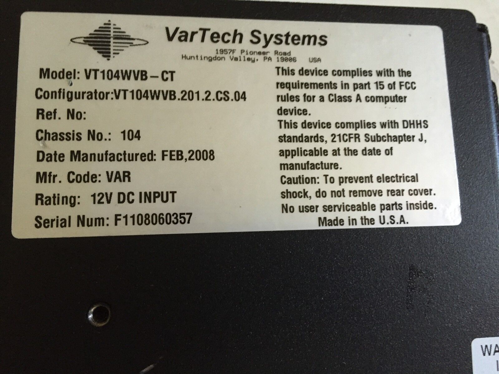 Vartech Vt104wvb-Ct Display Panel Lcd 10.4" Capacitive Touch 12,Var Display,Bd